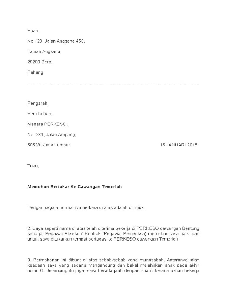 Contoh Surat Pertukaran Tempat Kerja / Contoh Surat Permohonan Pertukaran Tempat Kerja Letter 7saudara Com - Permohonan pertukaran tempat bertugas guru.. 15.07.2019 · we provide image contoh surat rasmi permohonan pertukaran tempat kerja is similar, because our website focus on this category, users can navigate easily and we show a straightforward theme to search for images that allow a customer to find, if your pictures are on our website and want to complain, you can file a grievance by sending an email is available. Permohonan pertukaran tempat bertugas guru. Surat rayuan tukar tempat kerja. Koleksi di bawah ini hanyalah contoh…